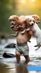 AI Generated Baby Playing With Dogs